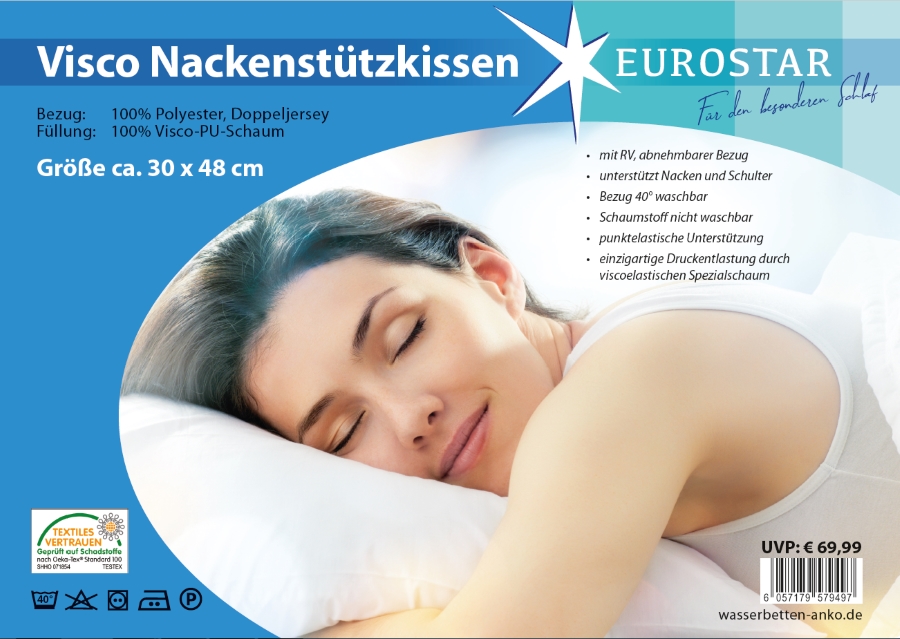 Der Visco- Schaumstoff hat die Funktion bei Körperwärme sehr weich und druckentlastend zu sein, deswegen passt sich dieses Nackenstützkissen sehr gut der Nacken und Kopfform an und stützt dies Zugleich.