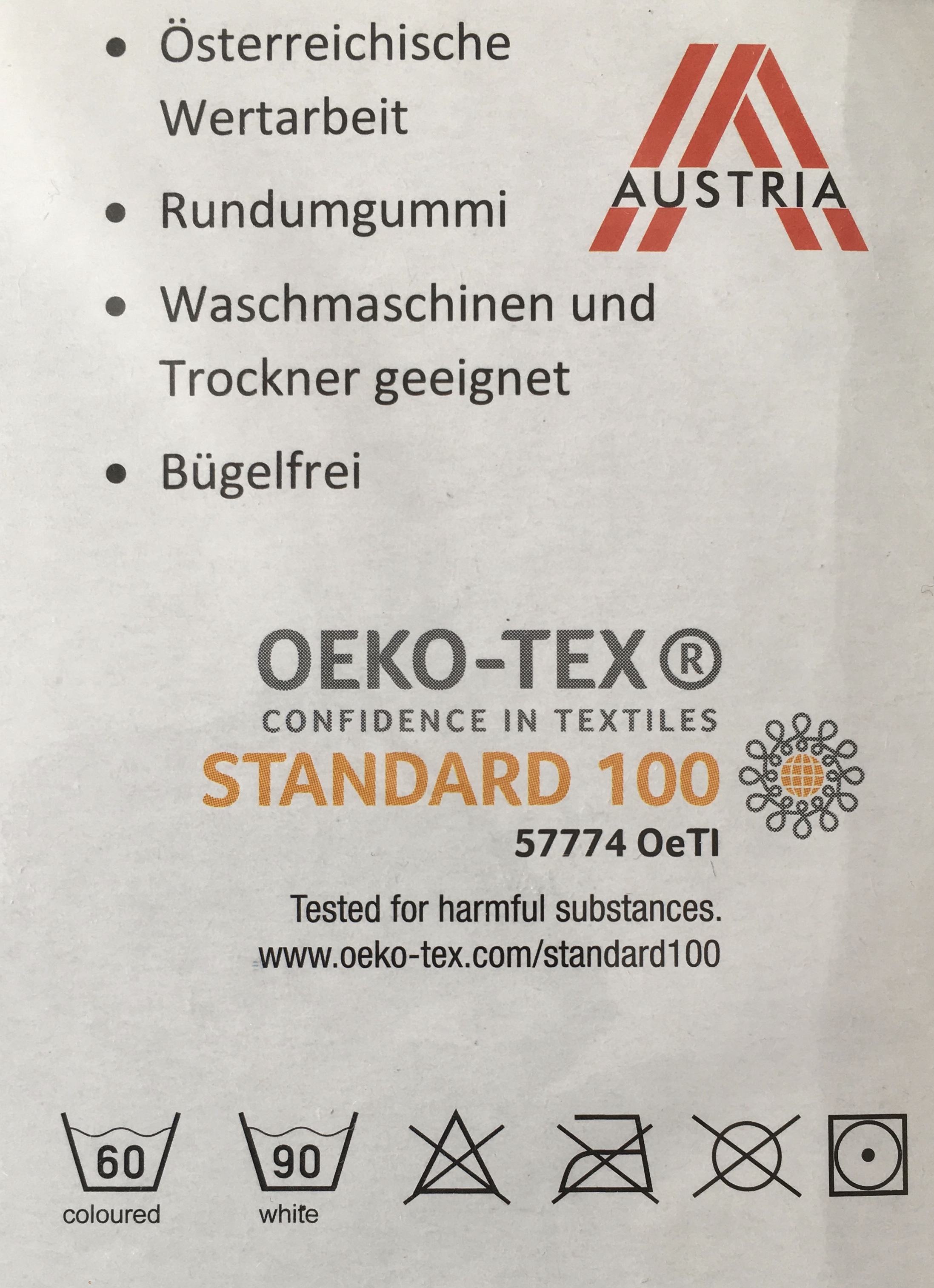 - Bis 100 Normalwäschen bei 90°C werden die Eigenschaften der Laminierung garantiert